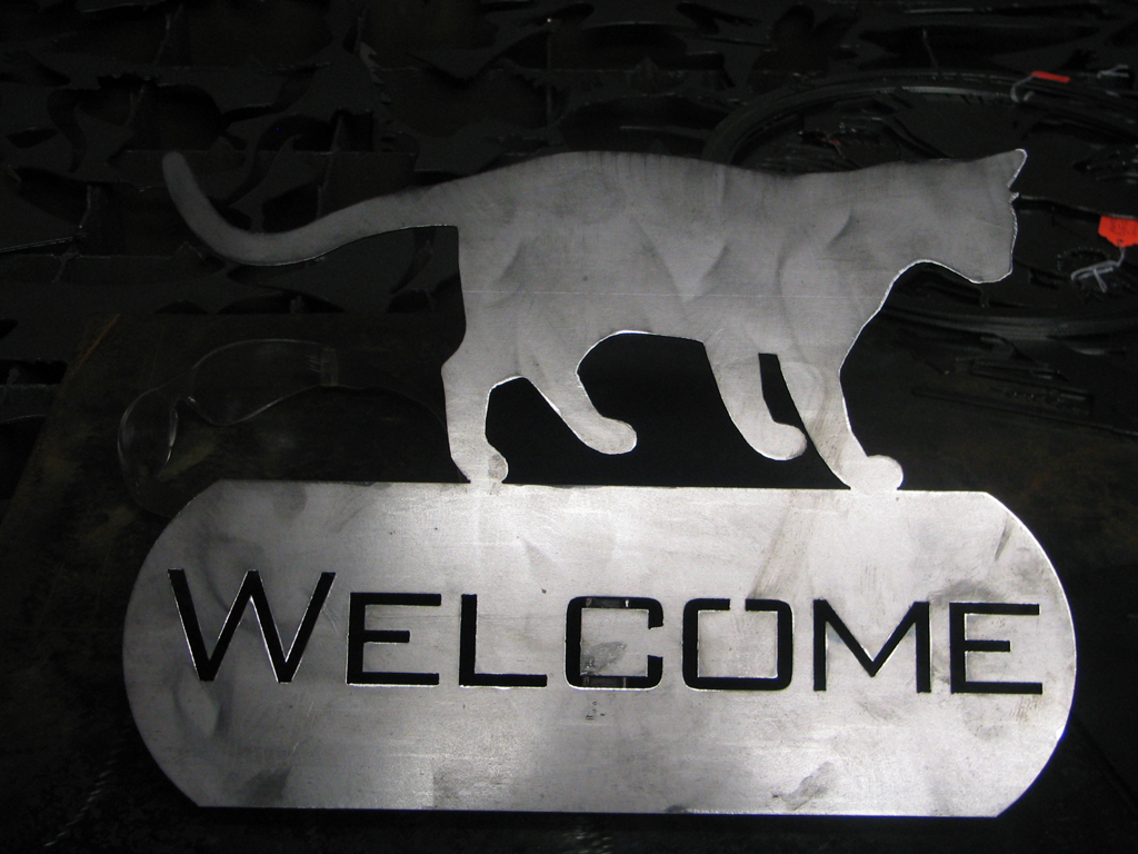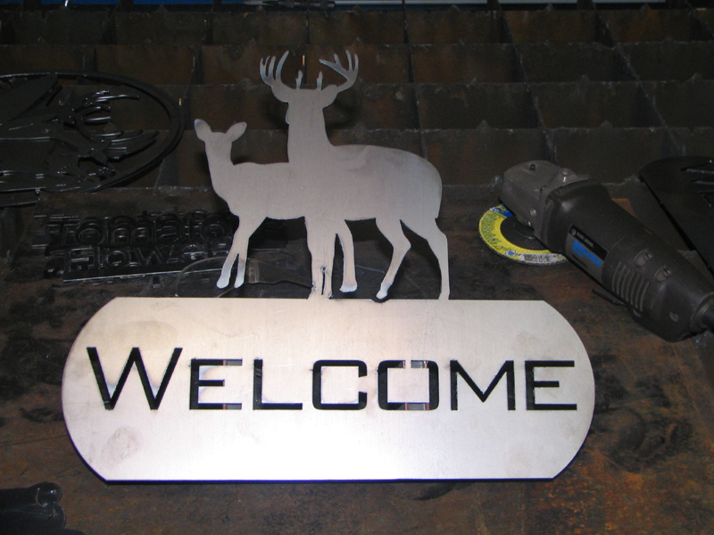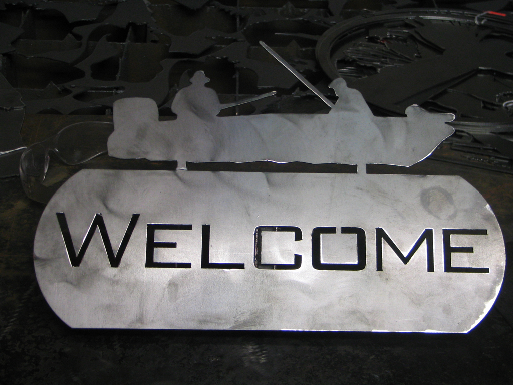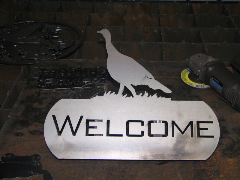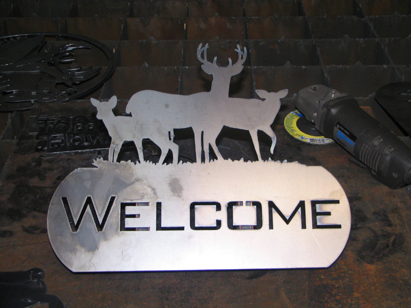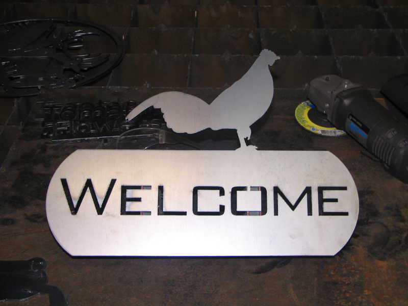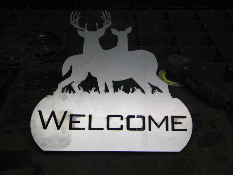 These signs are made from 16GA mild steel and are unpainted bare metal. They measure roughly